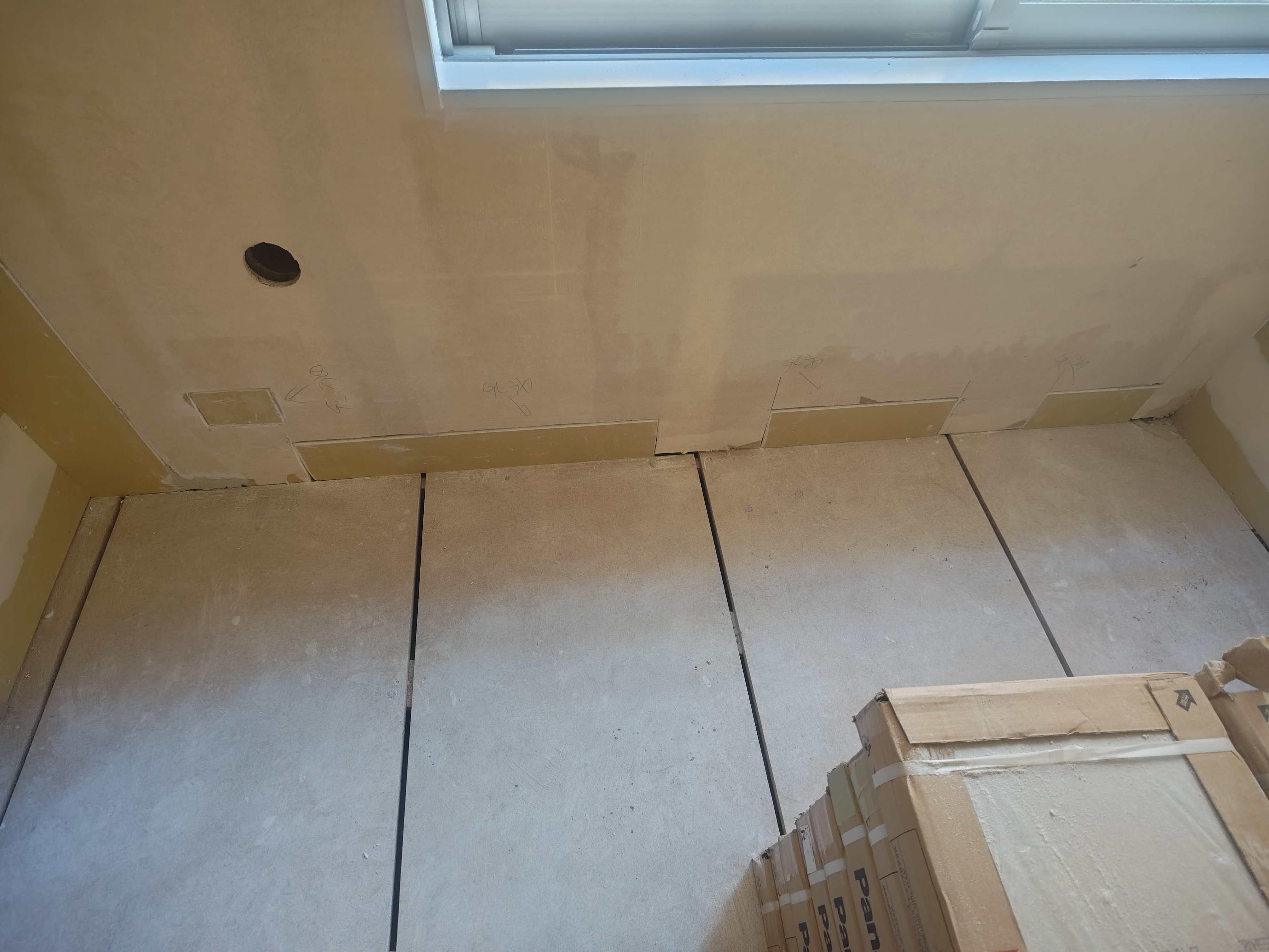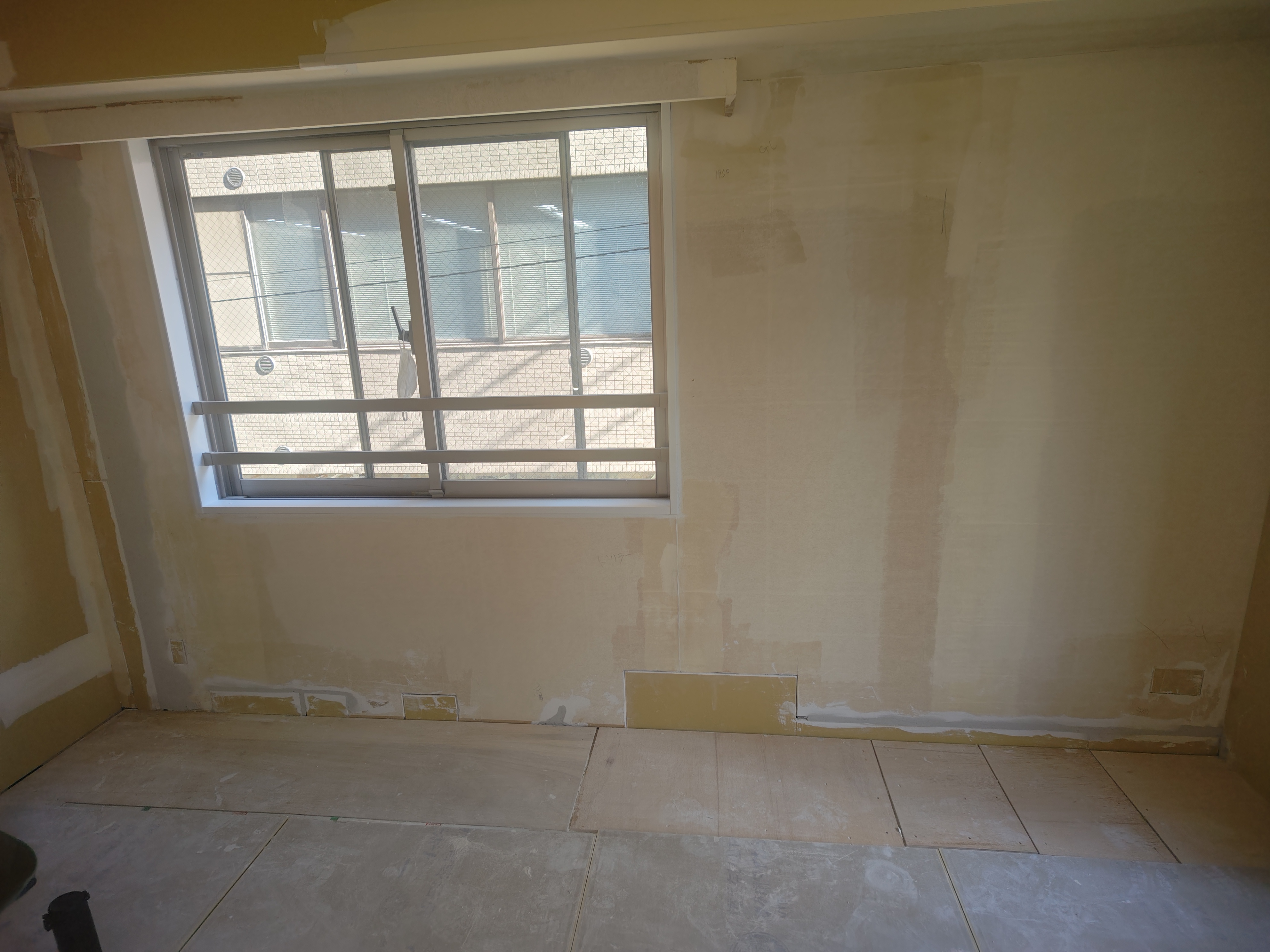 本日はGL補修及び玄関土間タイル下地を行いました。